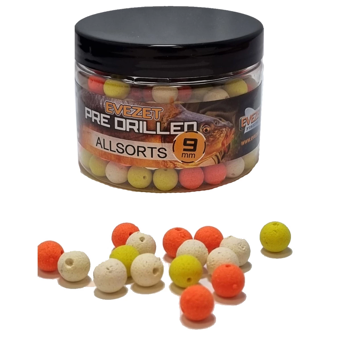 Een Serie miniaas van Evezet met diverse goede kleuren en smaken. Dit is een zinkende serie met boilies van 9 mm voorgeboord. Perfect dus voor method vissen.