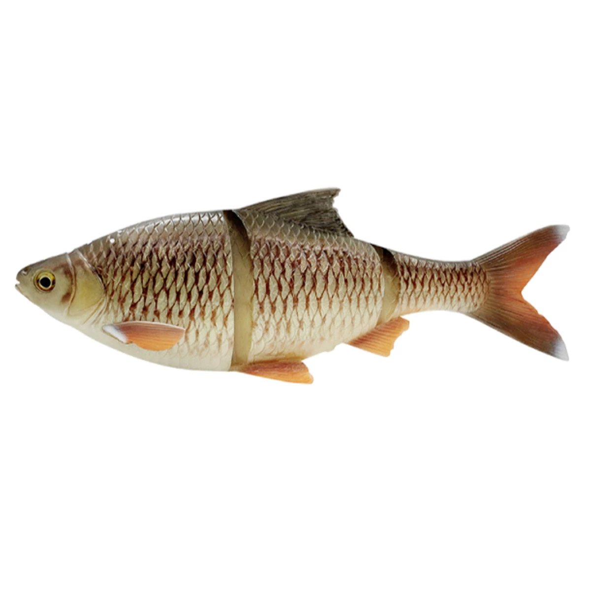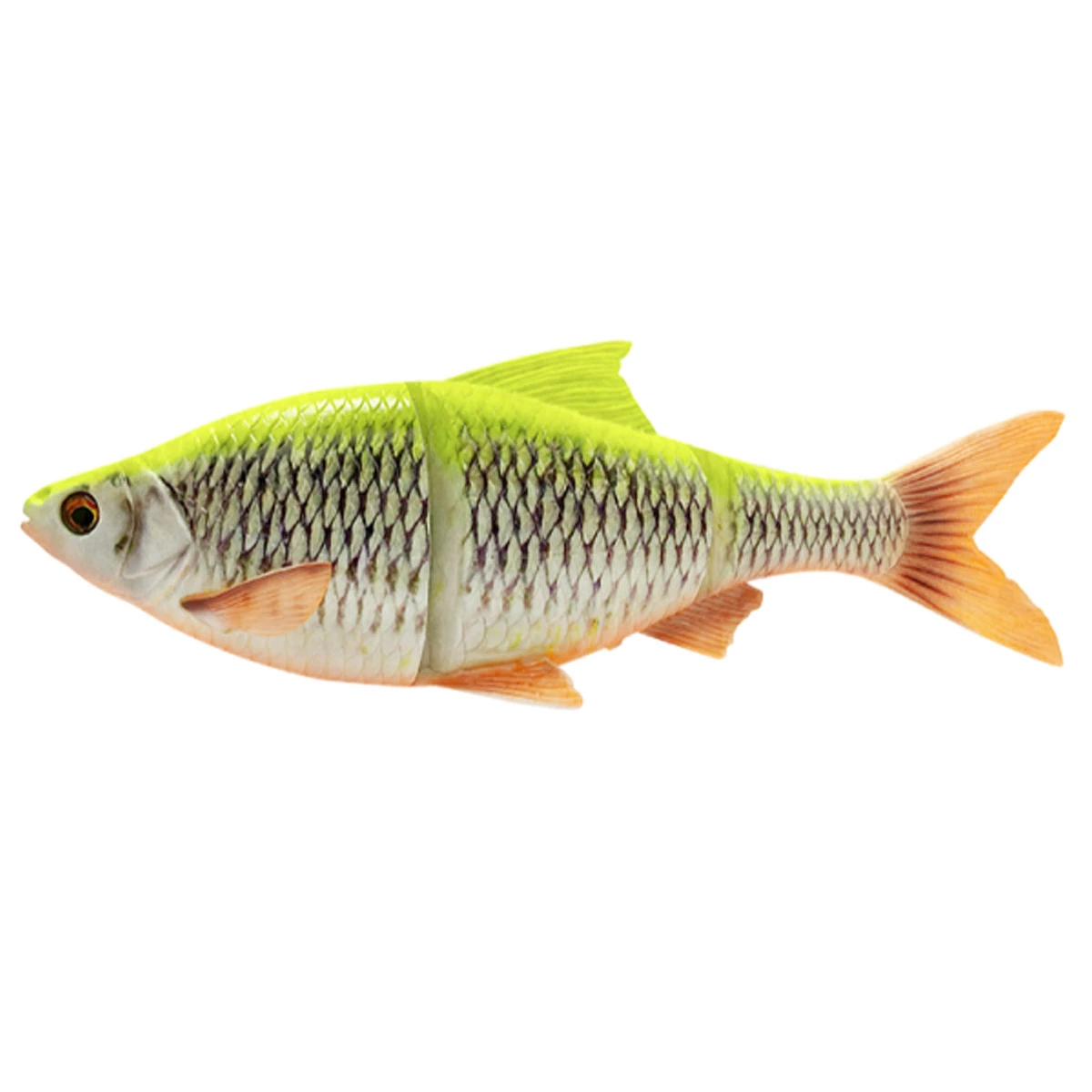 Savage Gear 4D line Thru Roach. Gemaakt door middel van een super gedetailleerde 4D scan van een echte voorn. Het innovatieve line-thru-systeem geeft je de mogelijkheid de haken zowel onder de buik als op de rug te bevestigen, afhankelijk van hoe jij hem wilt vissen. Zodra een vis is gehaakt zal de swimbait over de onderlijn schieten,van de snoek vandaan, zodat hij deze niet kan gebruiken om de haken te lossen! De actie is simpelweg niet van echt te onderscheiden, het zwemt als een echte levende voorn en zal zelfs de meest argwanende snoeken weten te verleiden!
